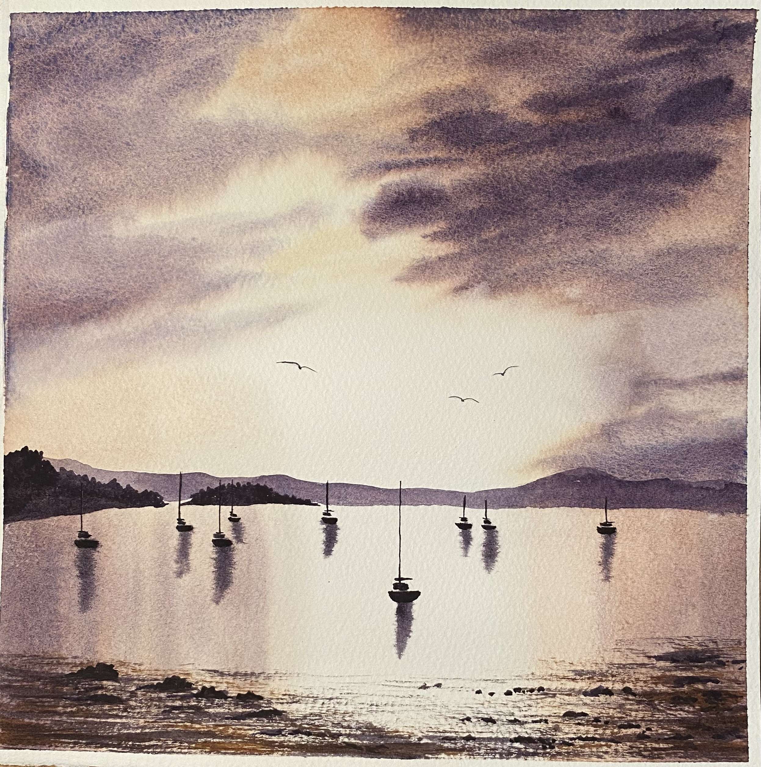 La lumière est super belle, bravo pour les mâts, bien fins, j’aime aussi beaucoup les traits au pinceau sec au 1er plan. Il y a juste un truc qui me chiffonne avec les ombres mais je n’arrive pas à trouver ce que c’est.