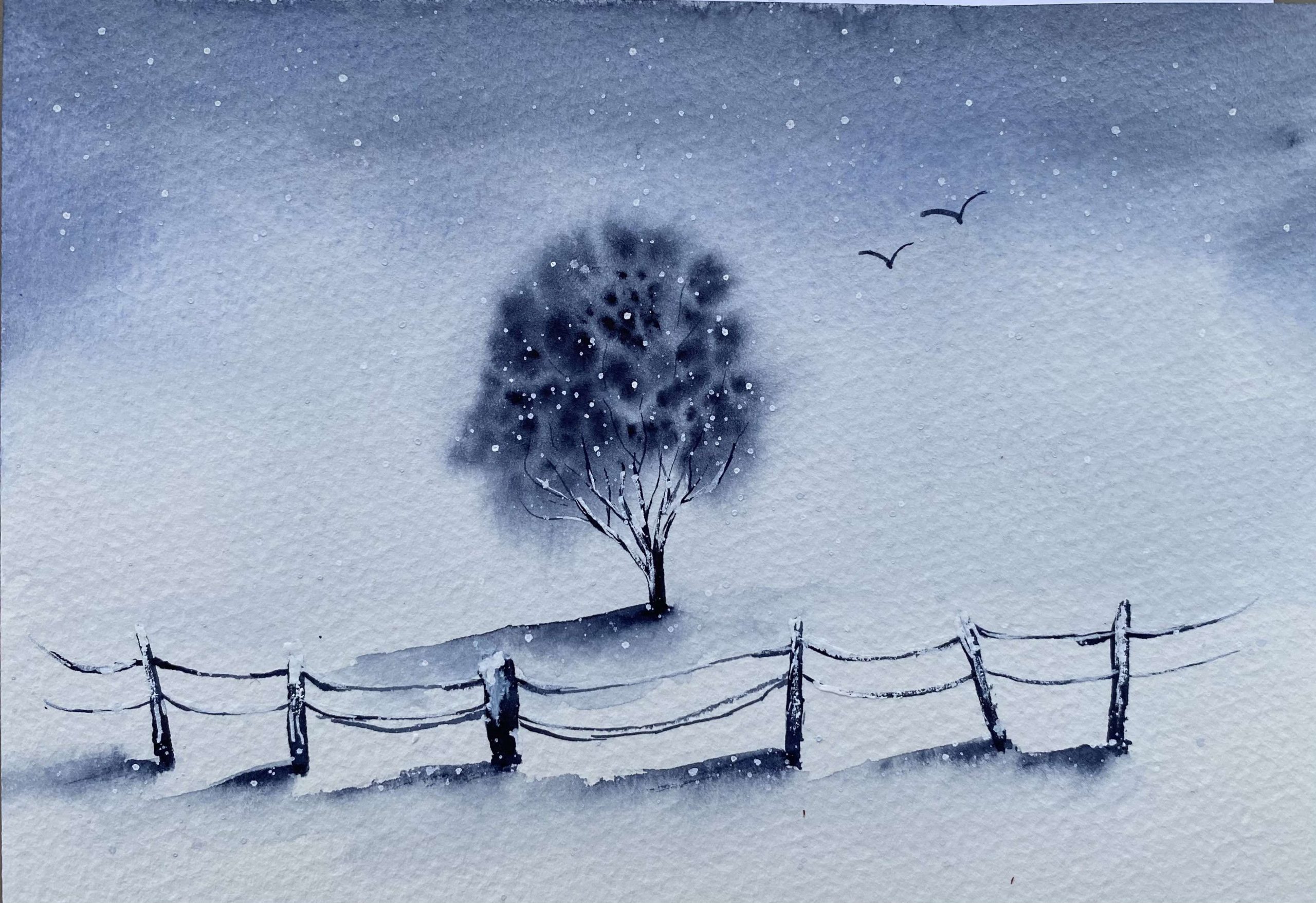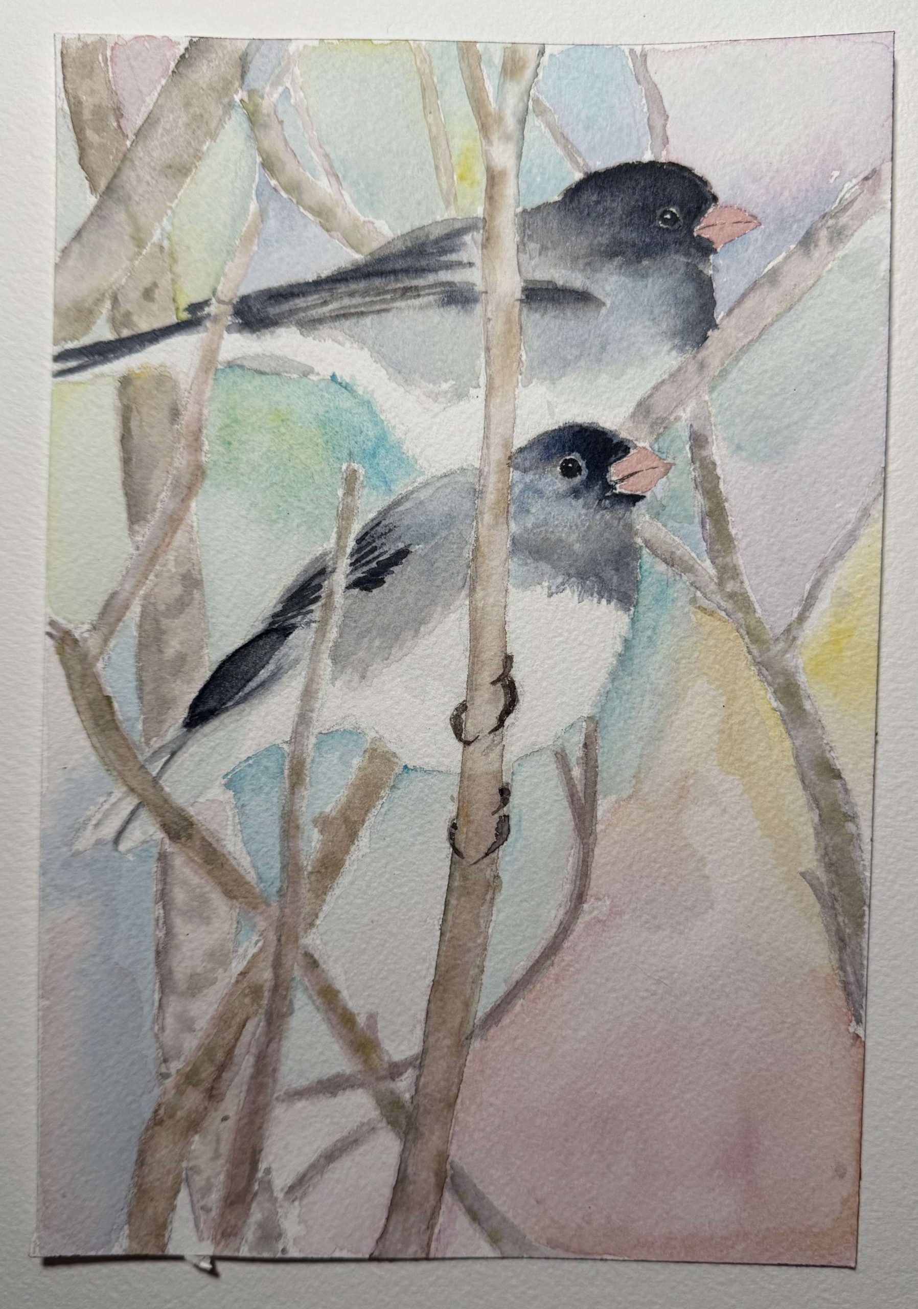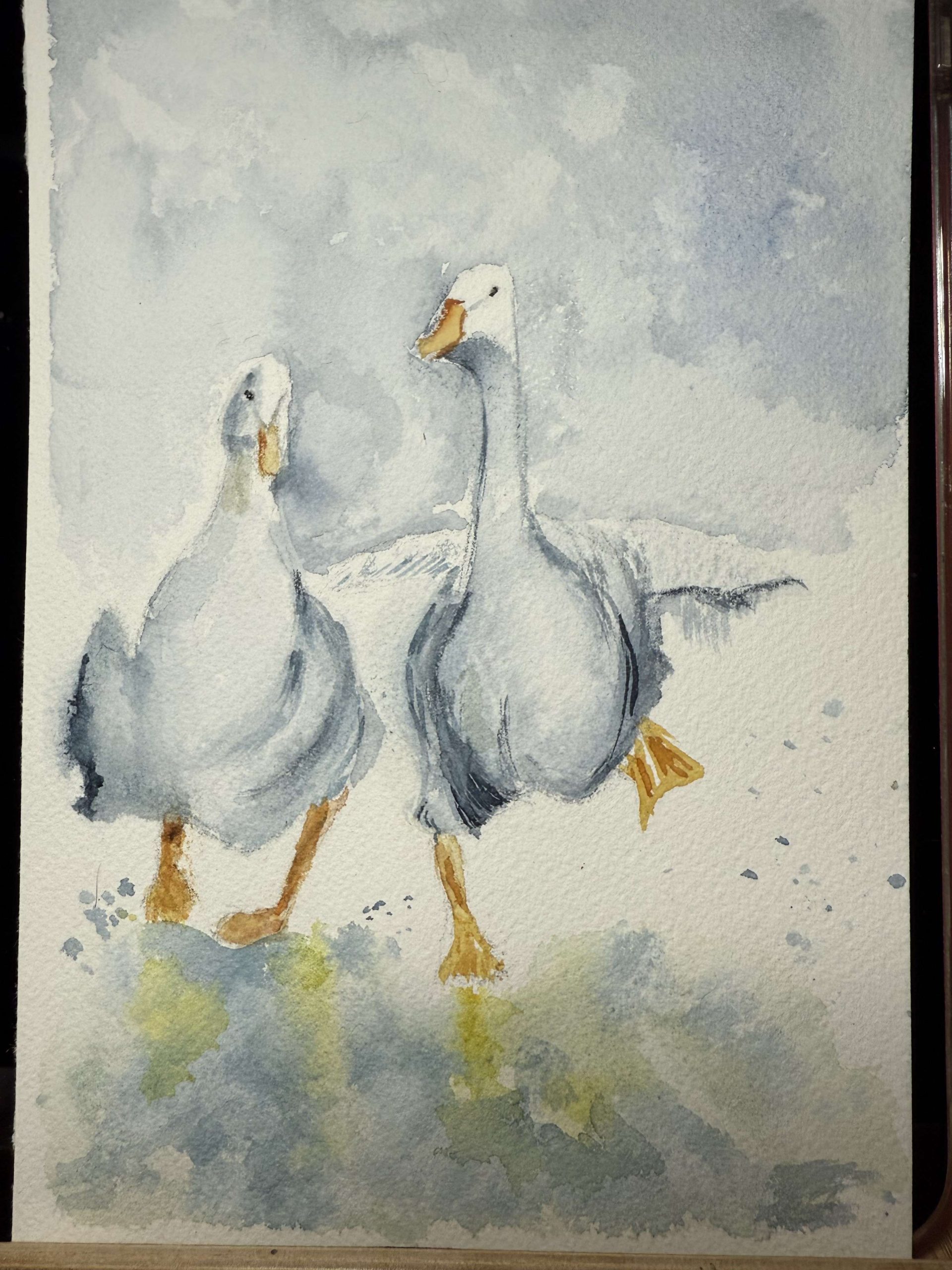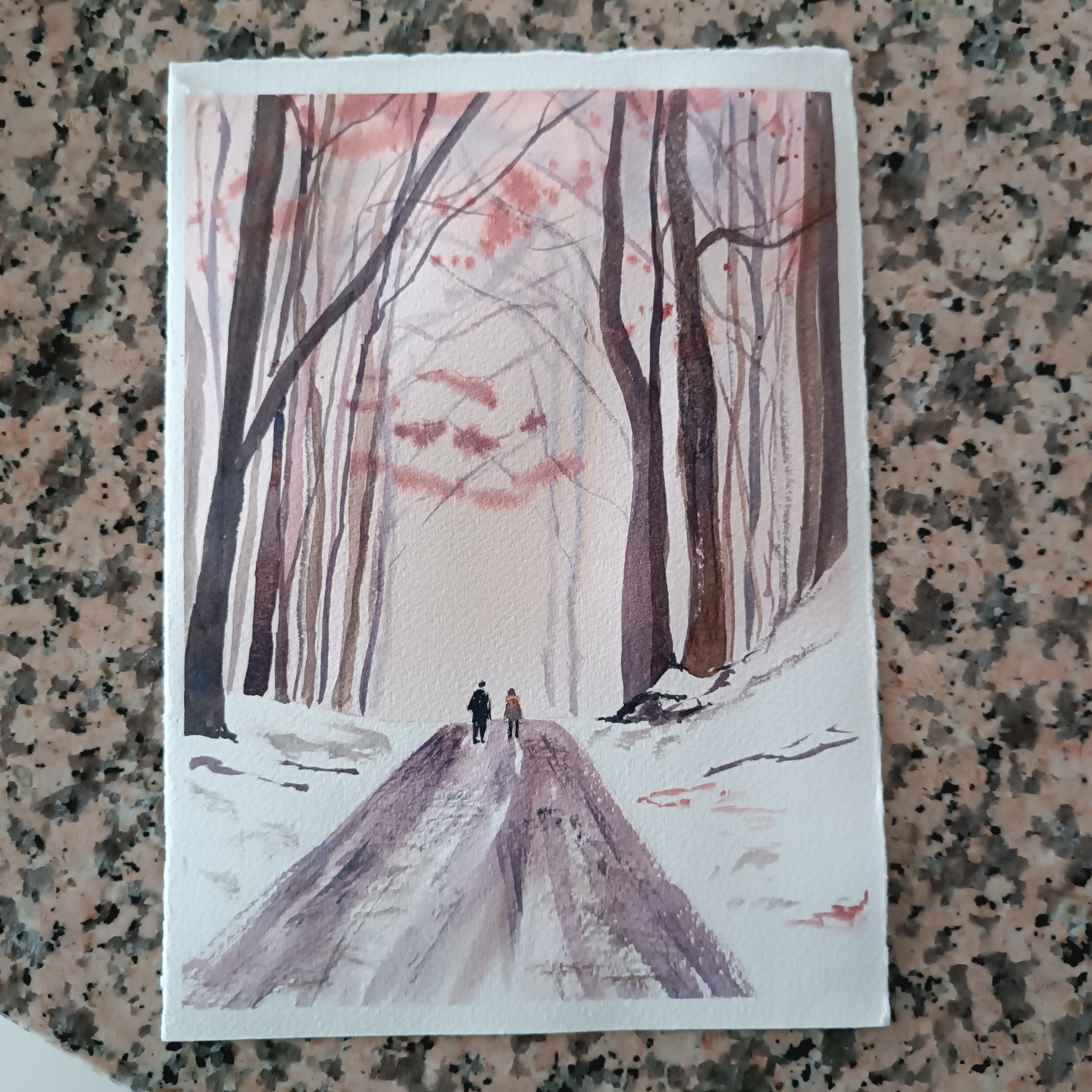 Cet après midi j’ai tenté la parenthèse créative d’Emmanuel Demoustiers. J’ai utilisé le verso d’une ancienne aquarelle. Ça fait un peu naïf, je j’aime guère, et j’ai fait ça à la va-vite. Ça se voit 🙈.