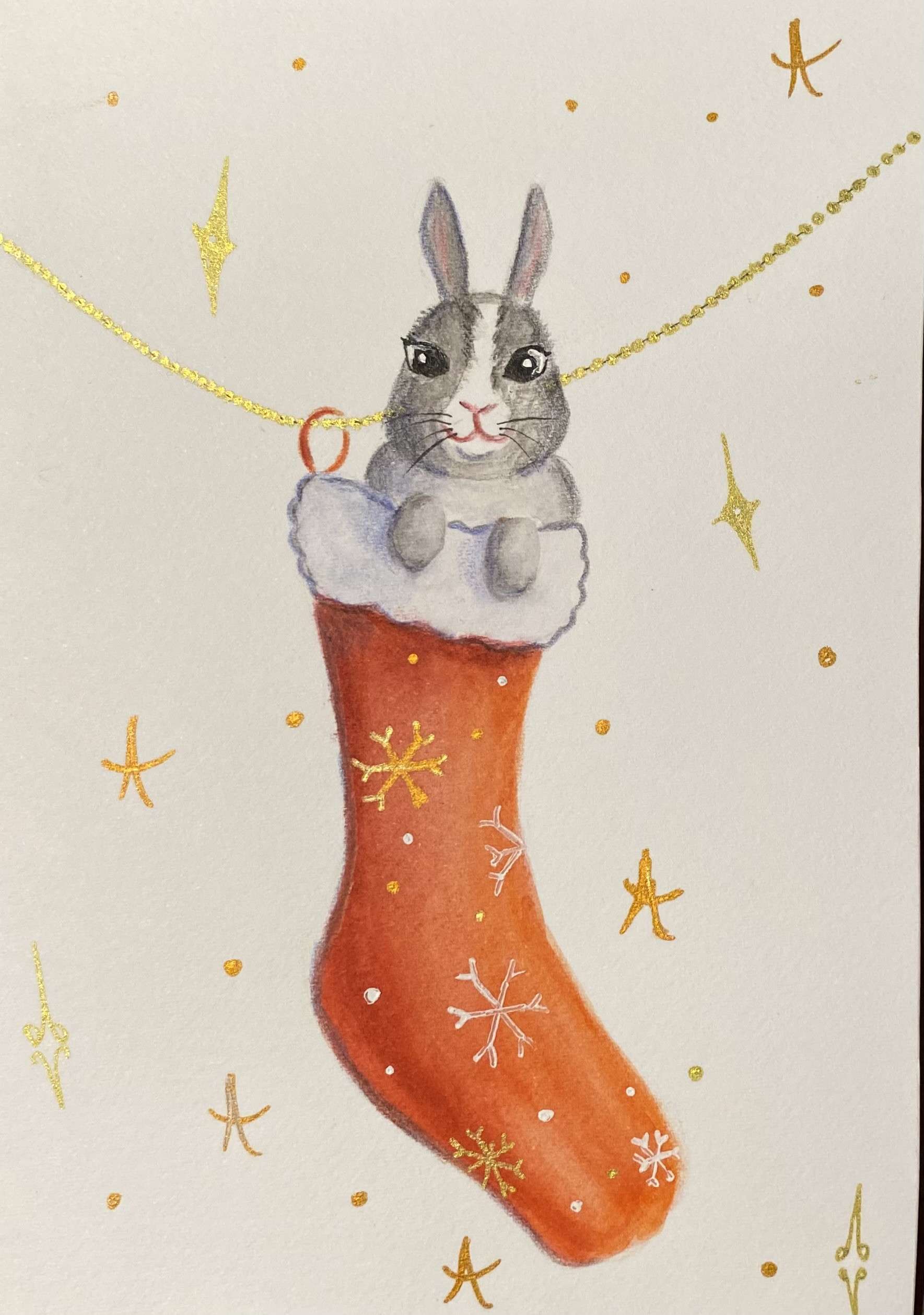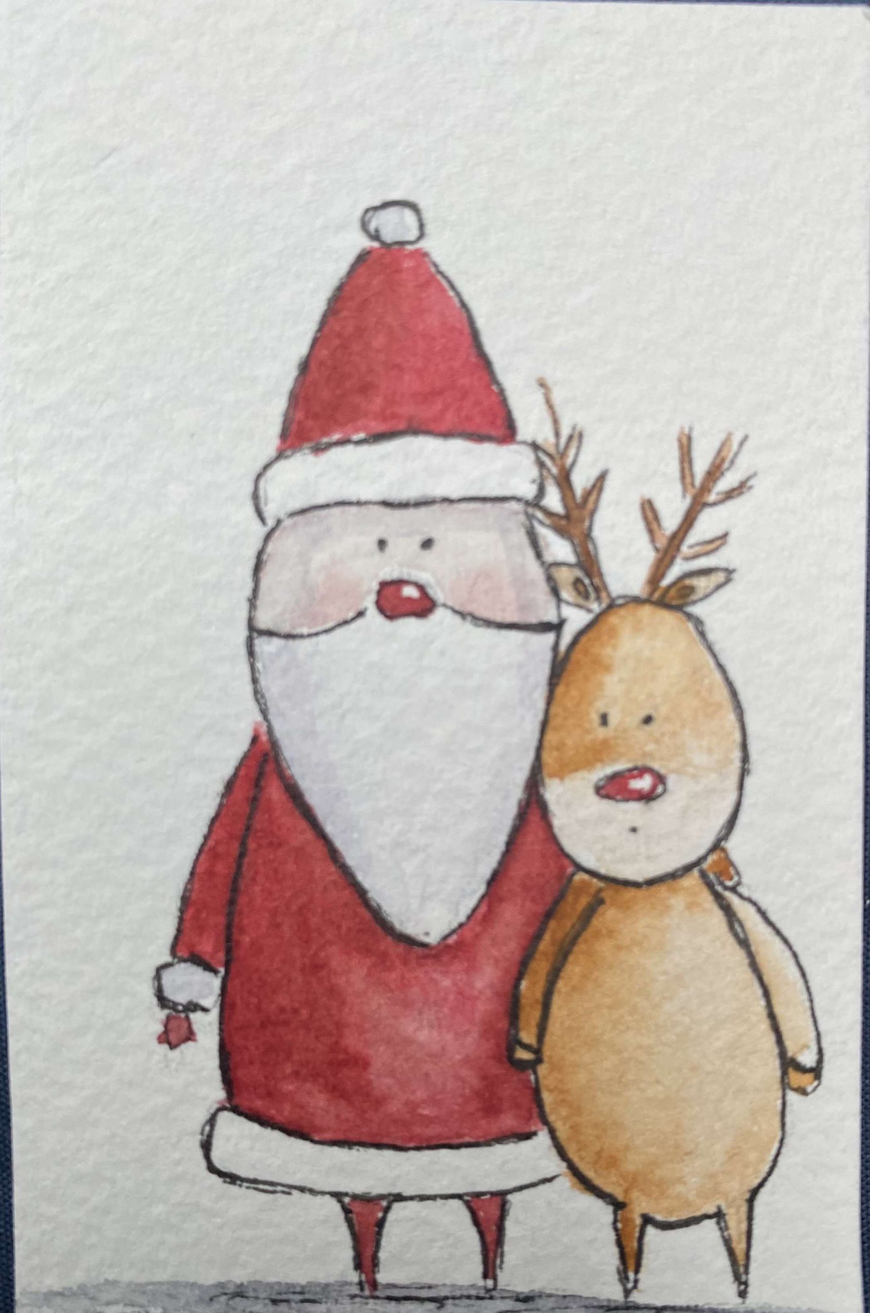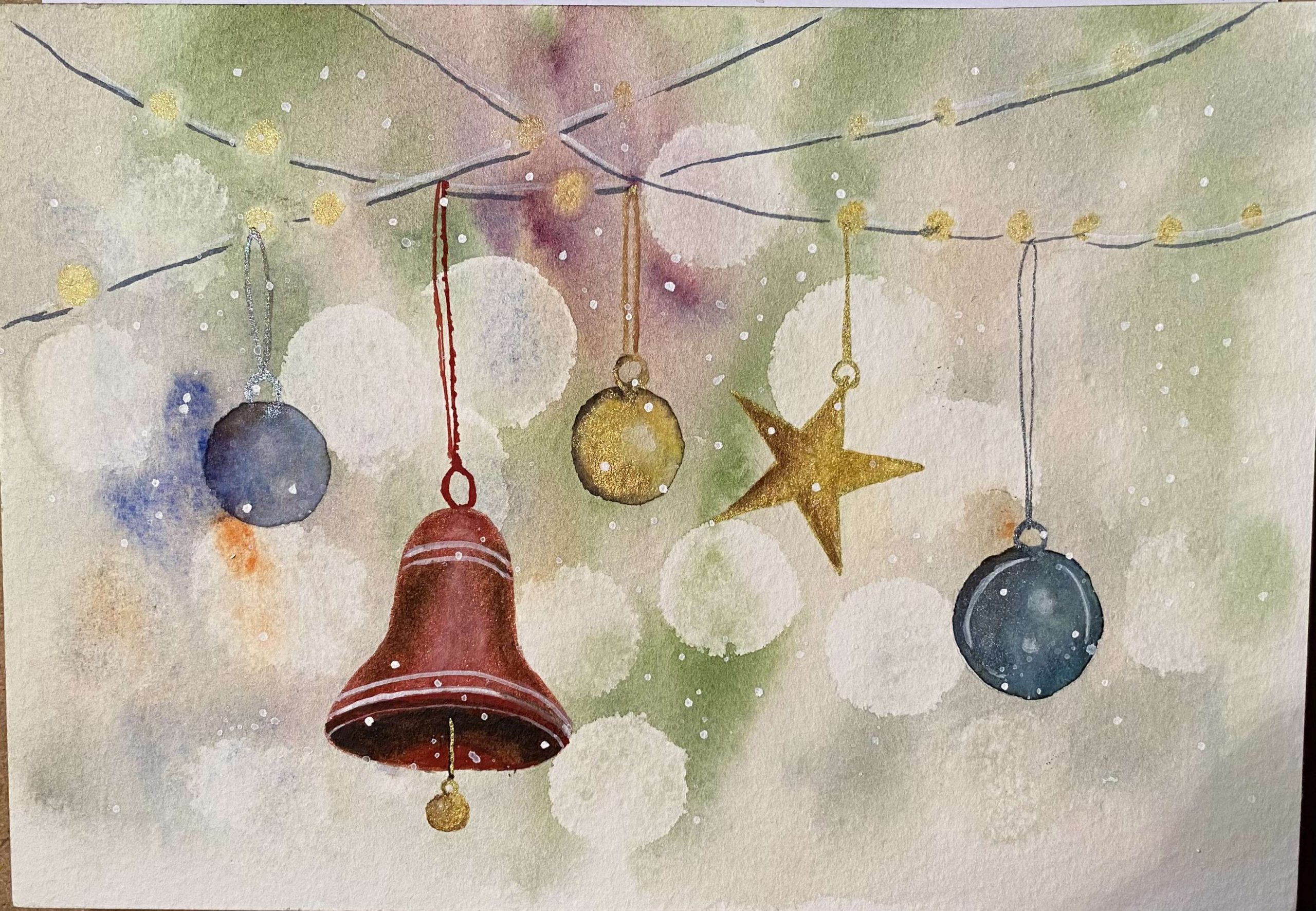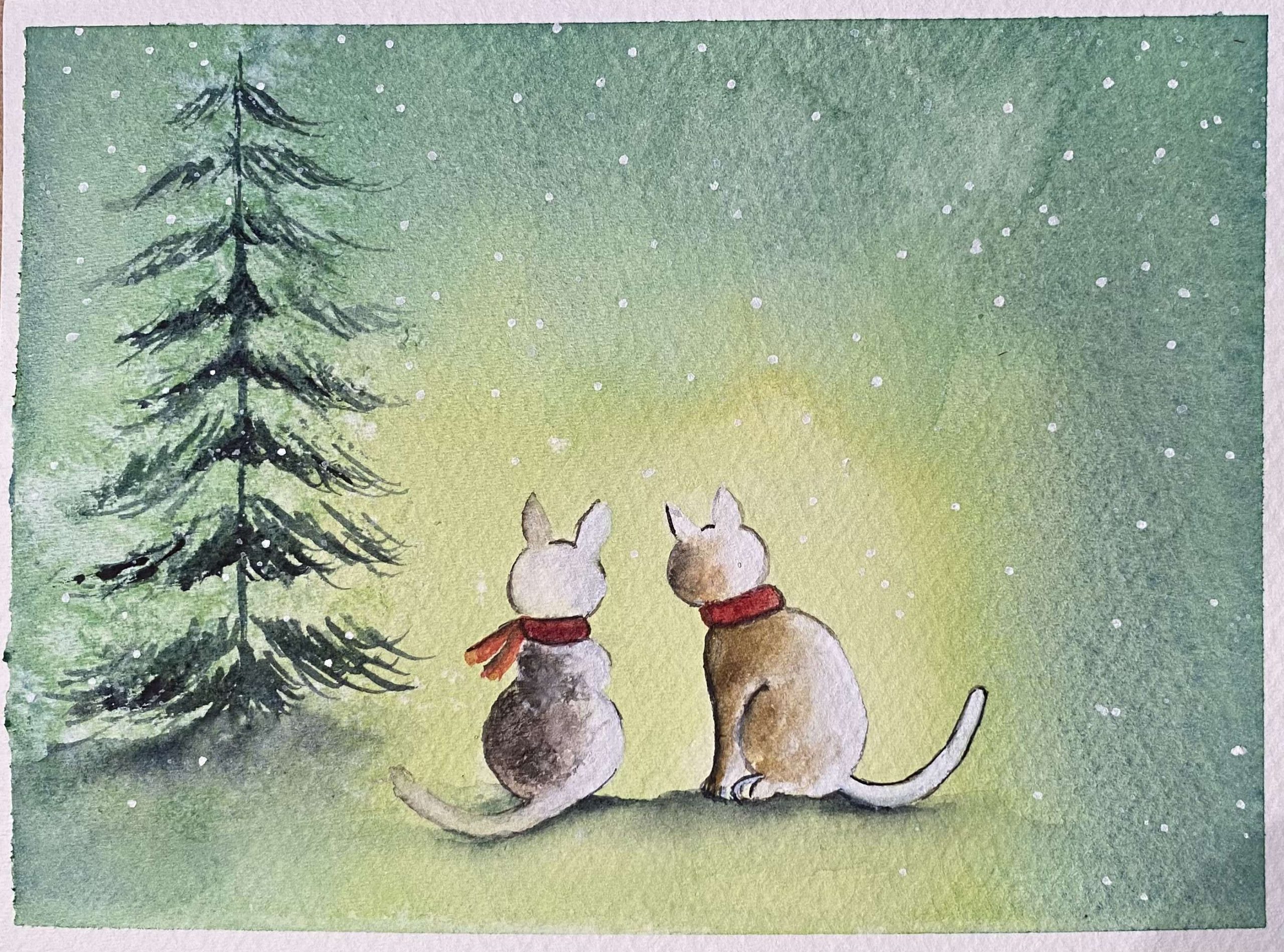 Voici ma carte de Noêl réalisée en aquarelle pour vous souhaiter de Joyeuses Fêtes !