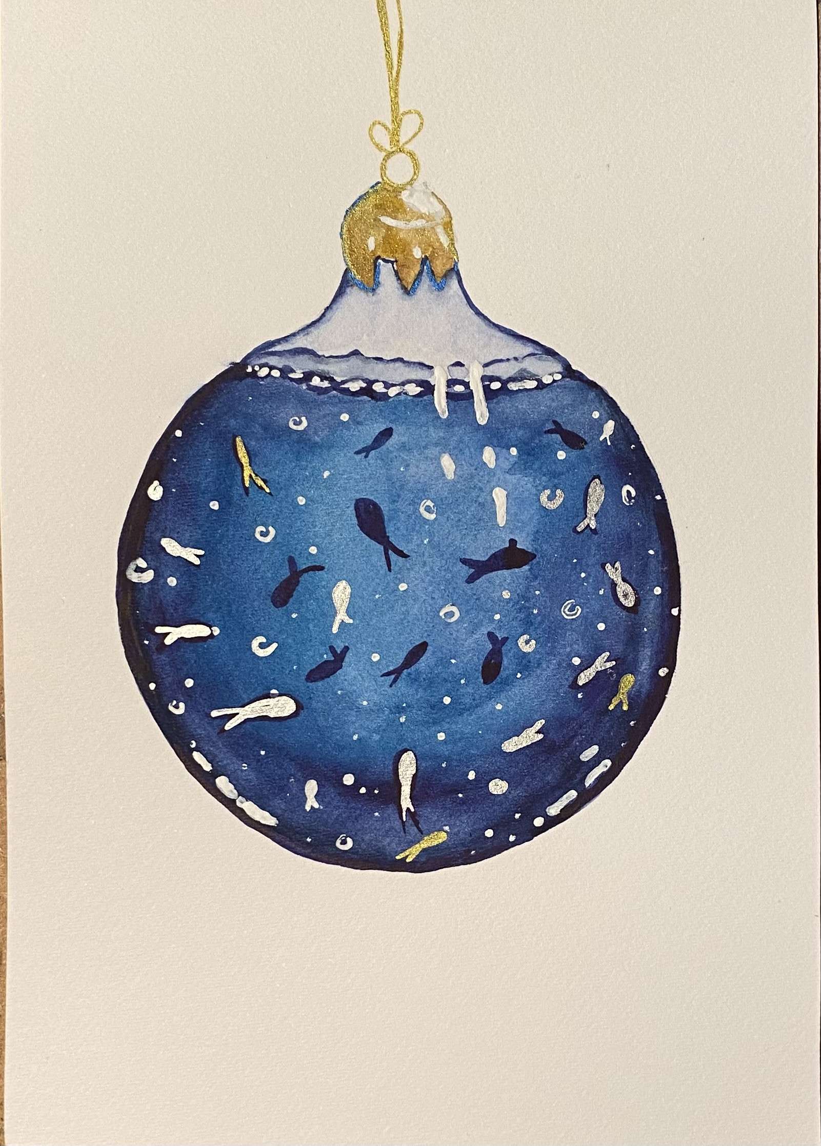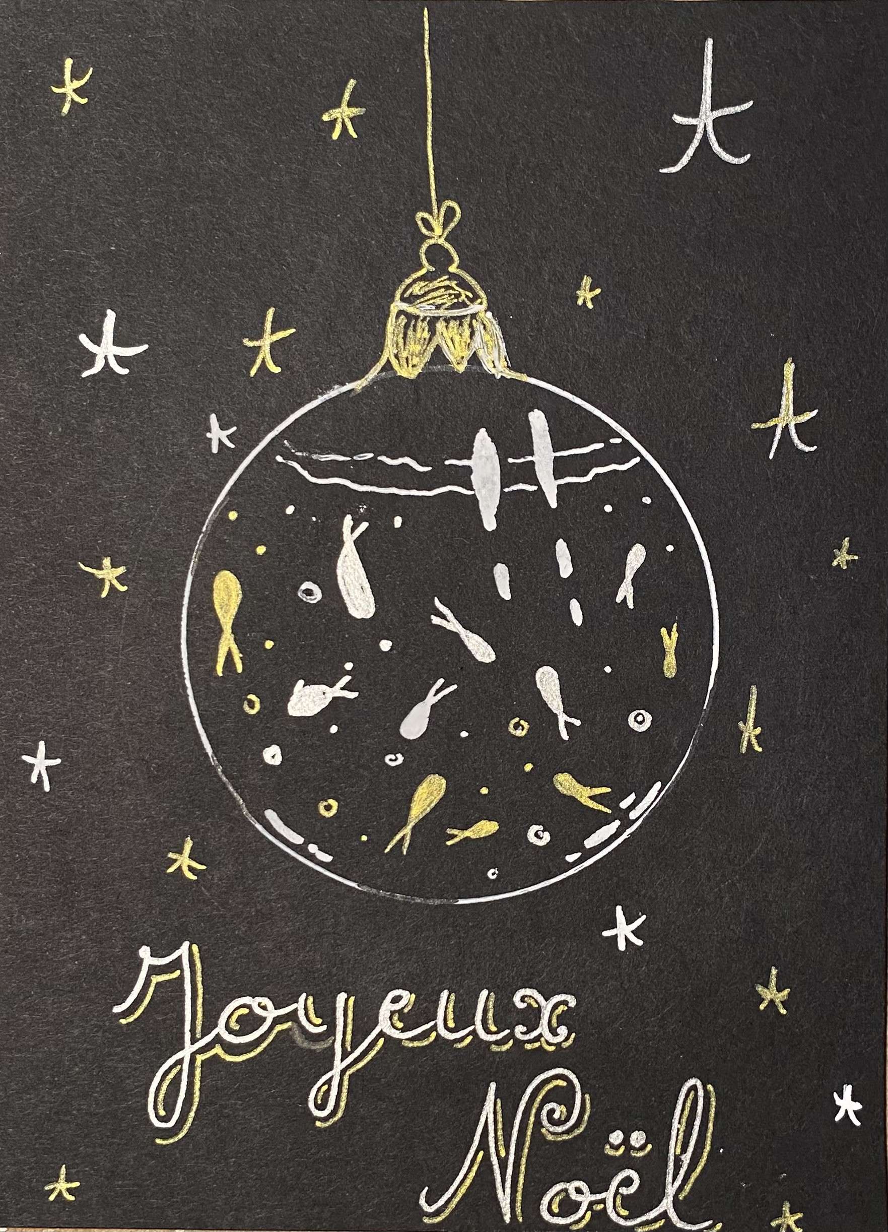 Chouettes ! As-tu utilisé des feutres métallisés ou de l’aquarelle pailletée dans l’étoile et les boules de Noël ?