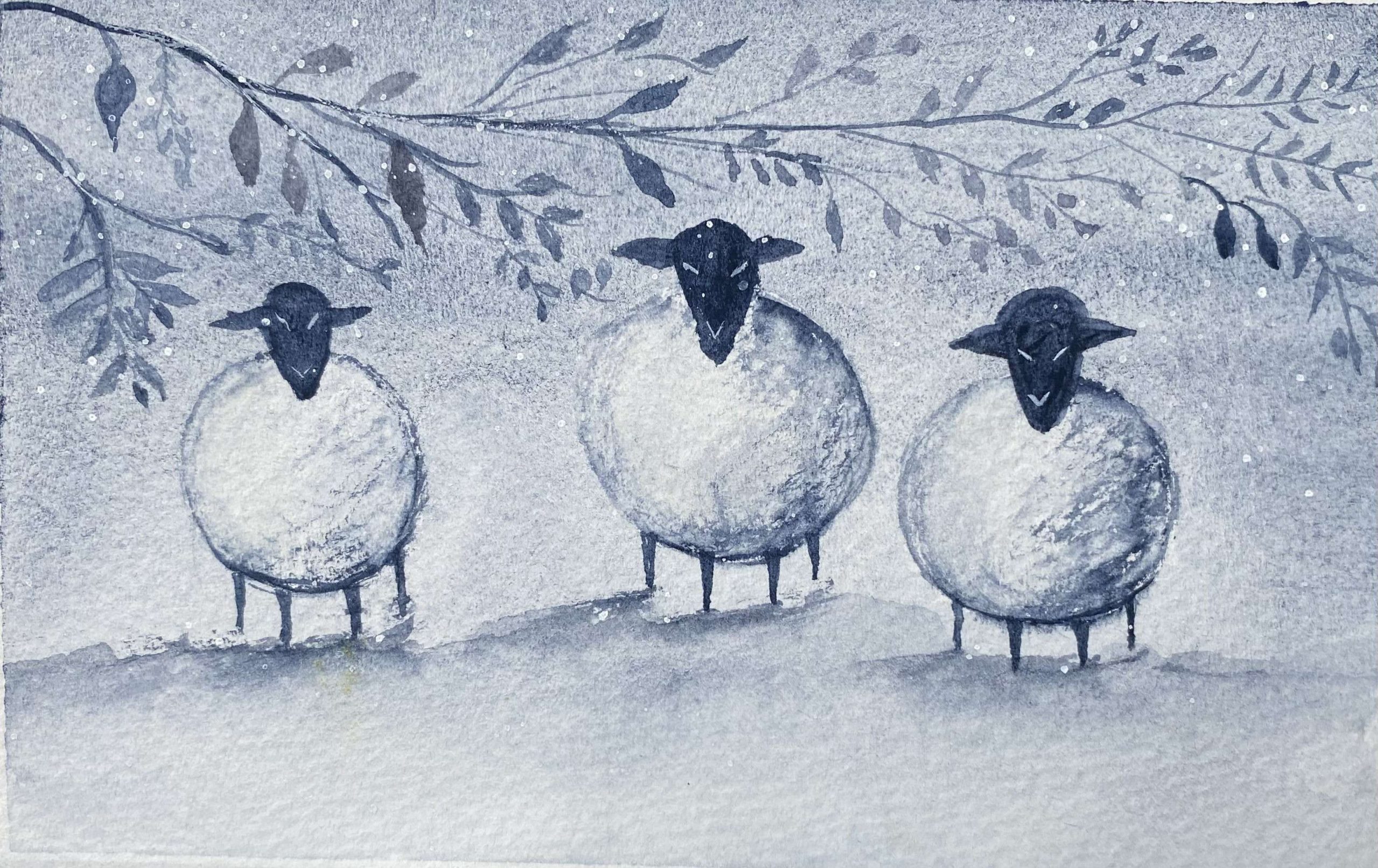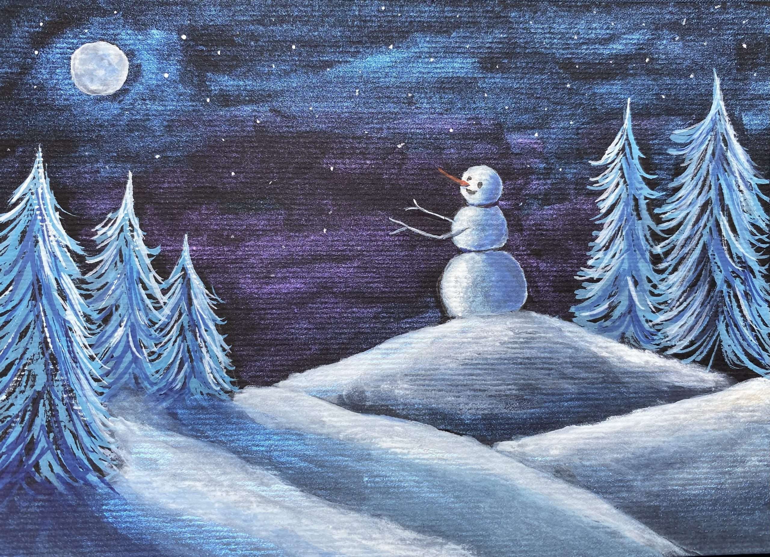 Ah ouiiiii ! Il anime la scène notre bonhomme de neige chef d’orchestre ! Très jolie peinture