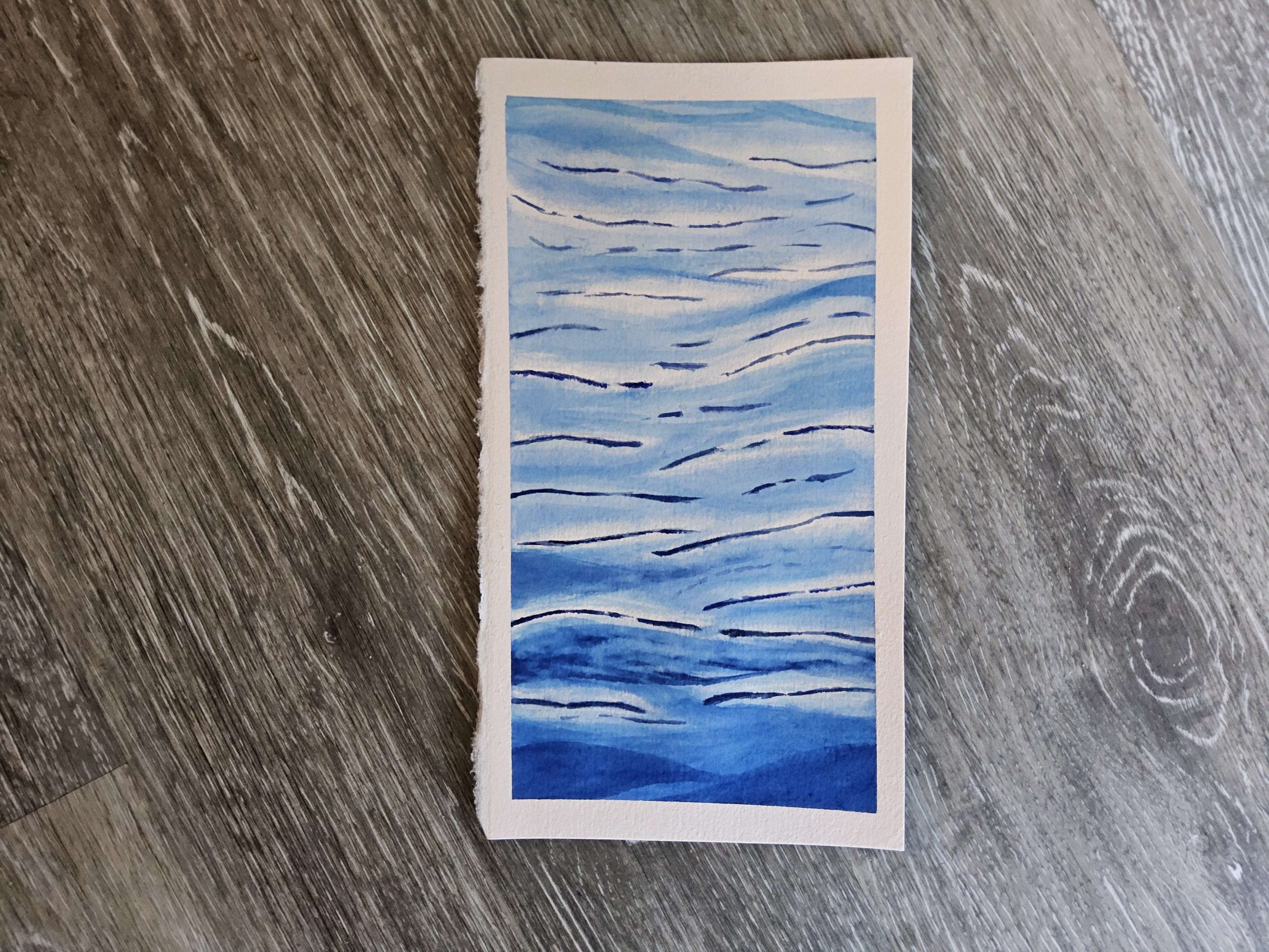 Voici mon exercice sur l’eau et ses vaguelettes… je ne suis pas convaincue du rendu ou d’avoir bien compris la manière de le faire…mais j’ai essayé !!