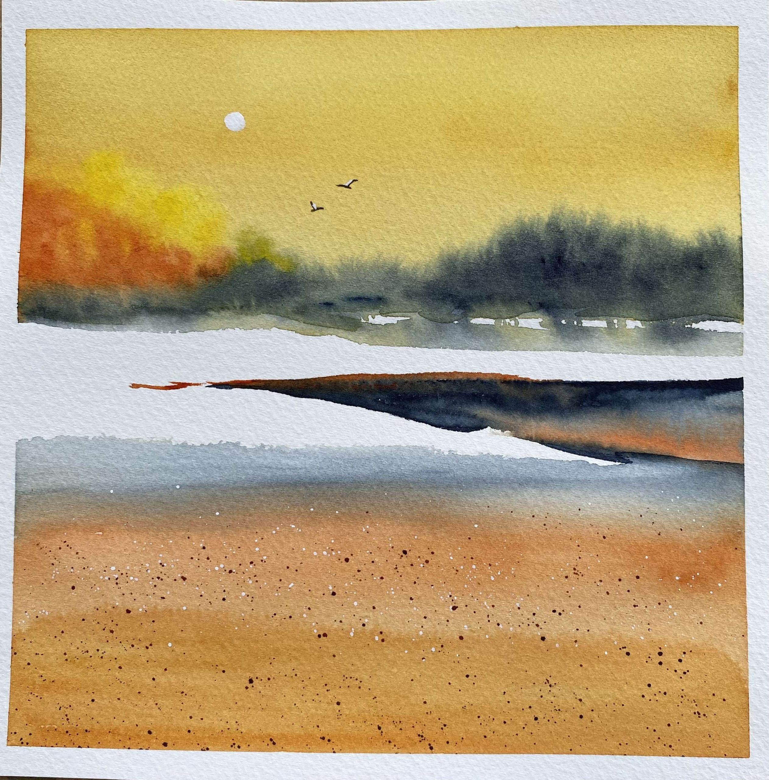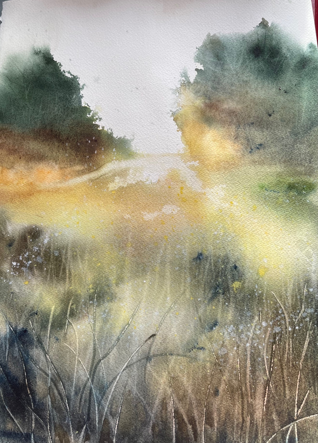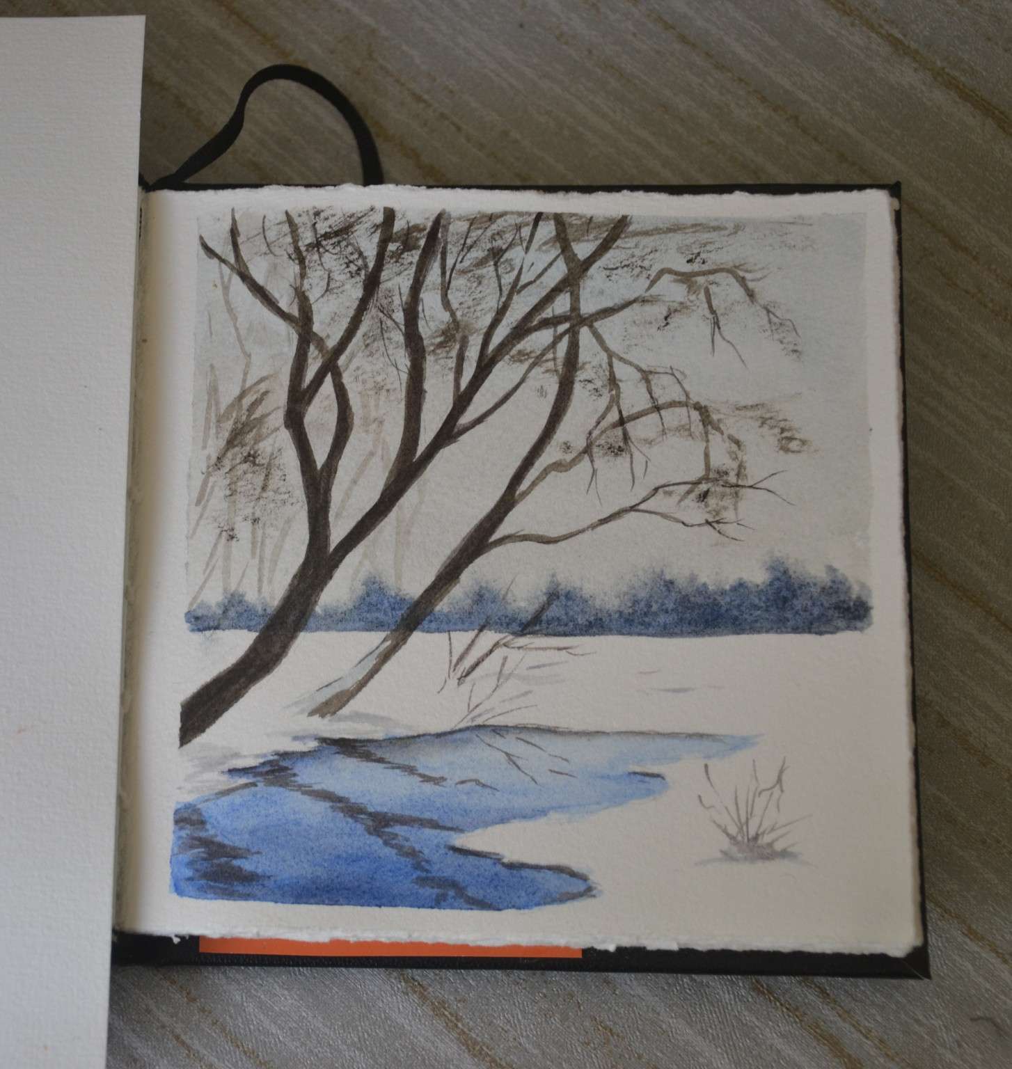 Ça ressemble mais ce n’est pas tout à fait pareil. Celui de Cindy était consacré à la brume. La, je l’ai un peu bâclé, pas fait d’essais de peinture avant, et réalisé au dos d’une ancienne aquarelle.