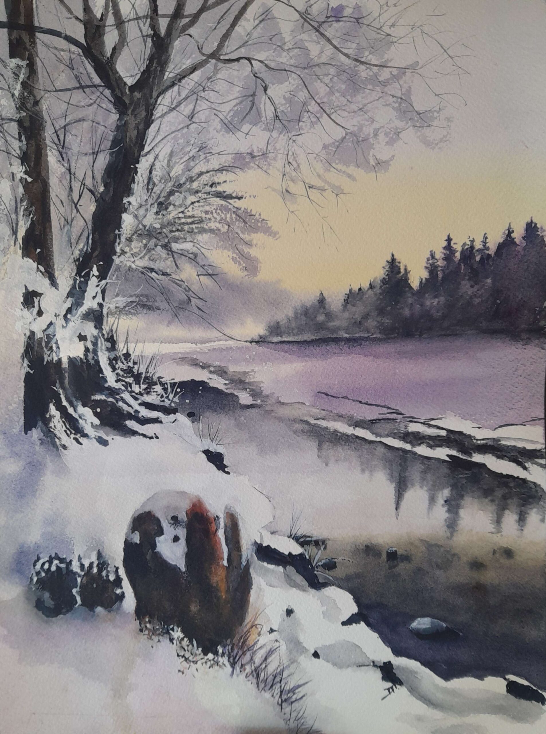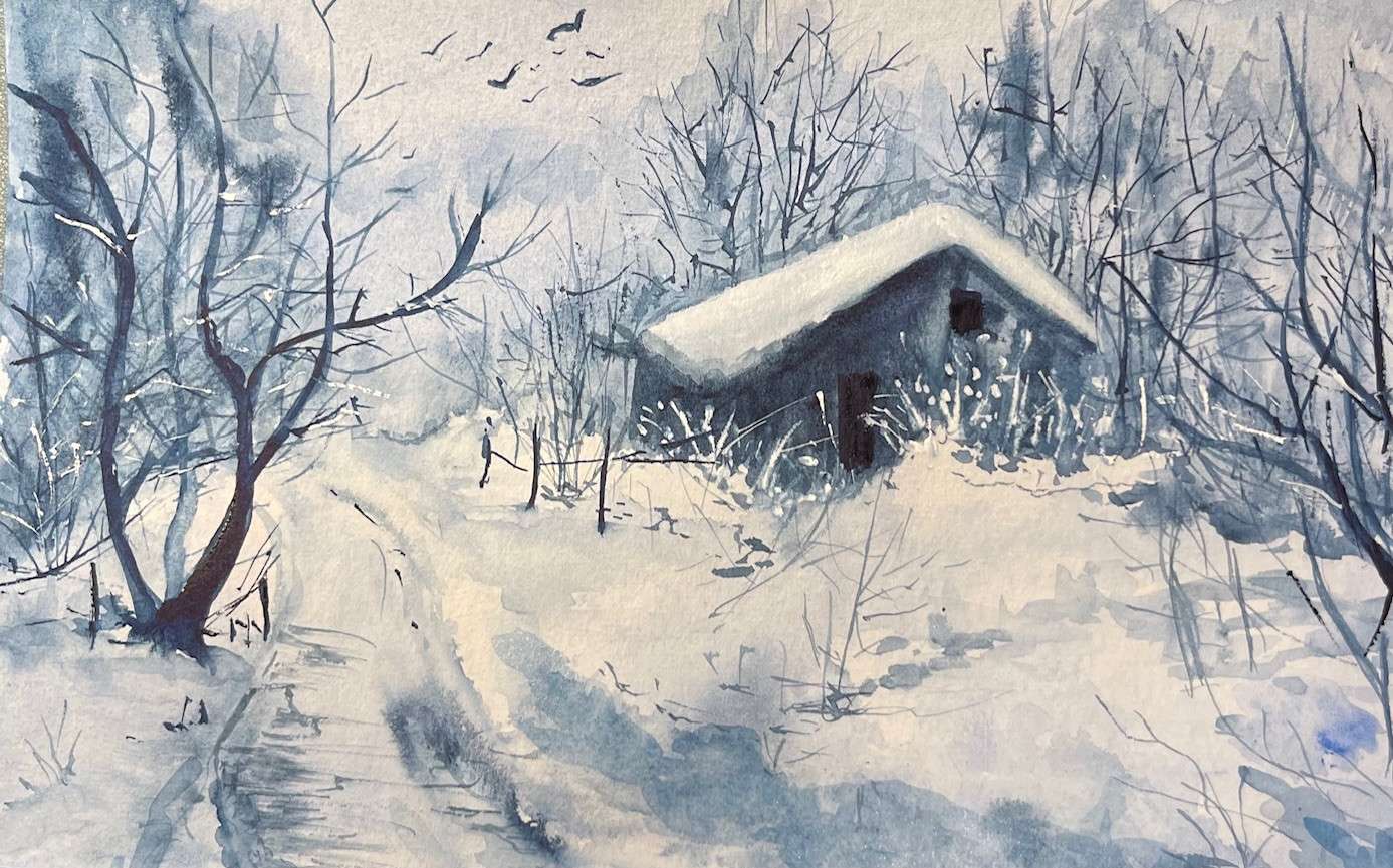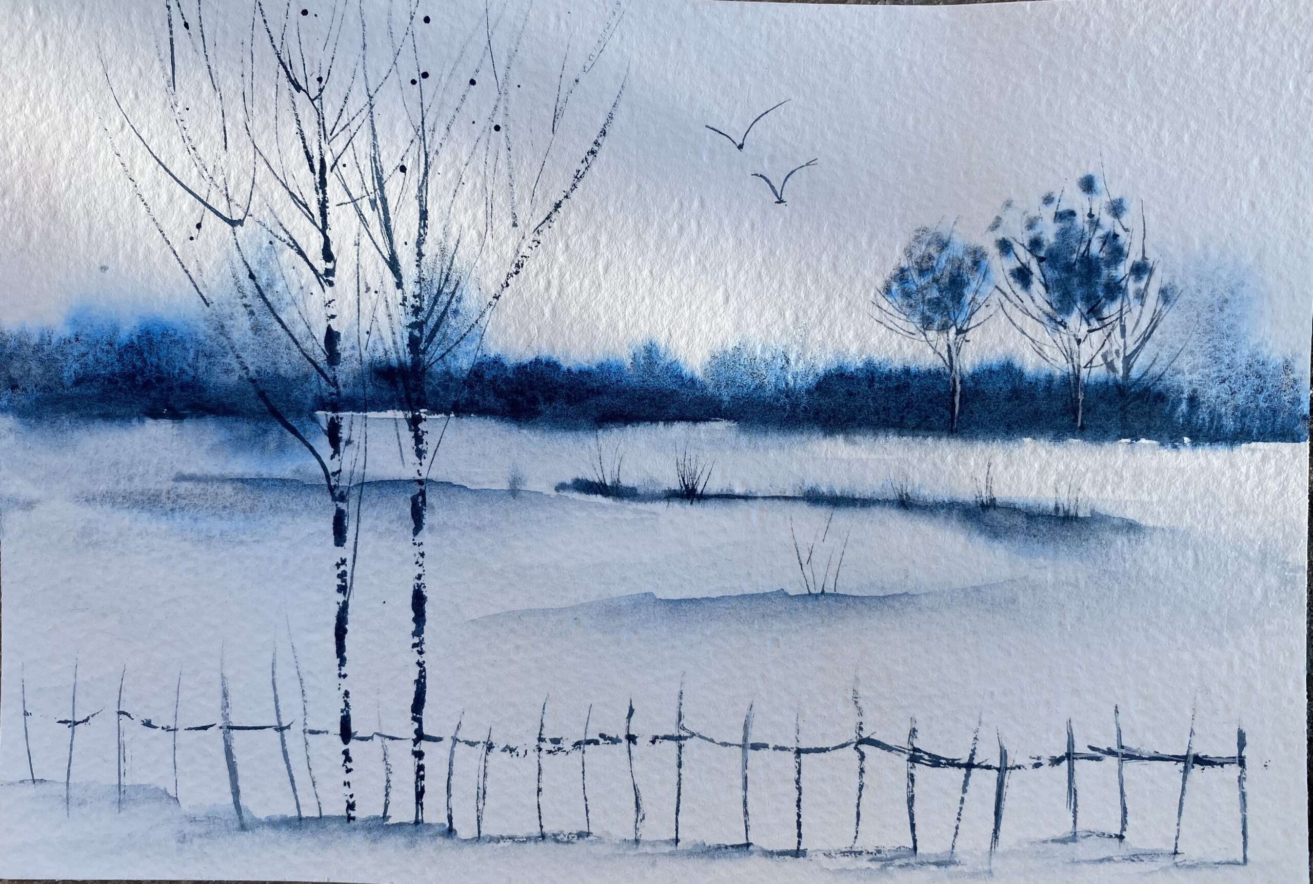Bonjour me voici au diapason de la météo : ambiance hivernale sur papier fontaine format A4.