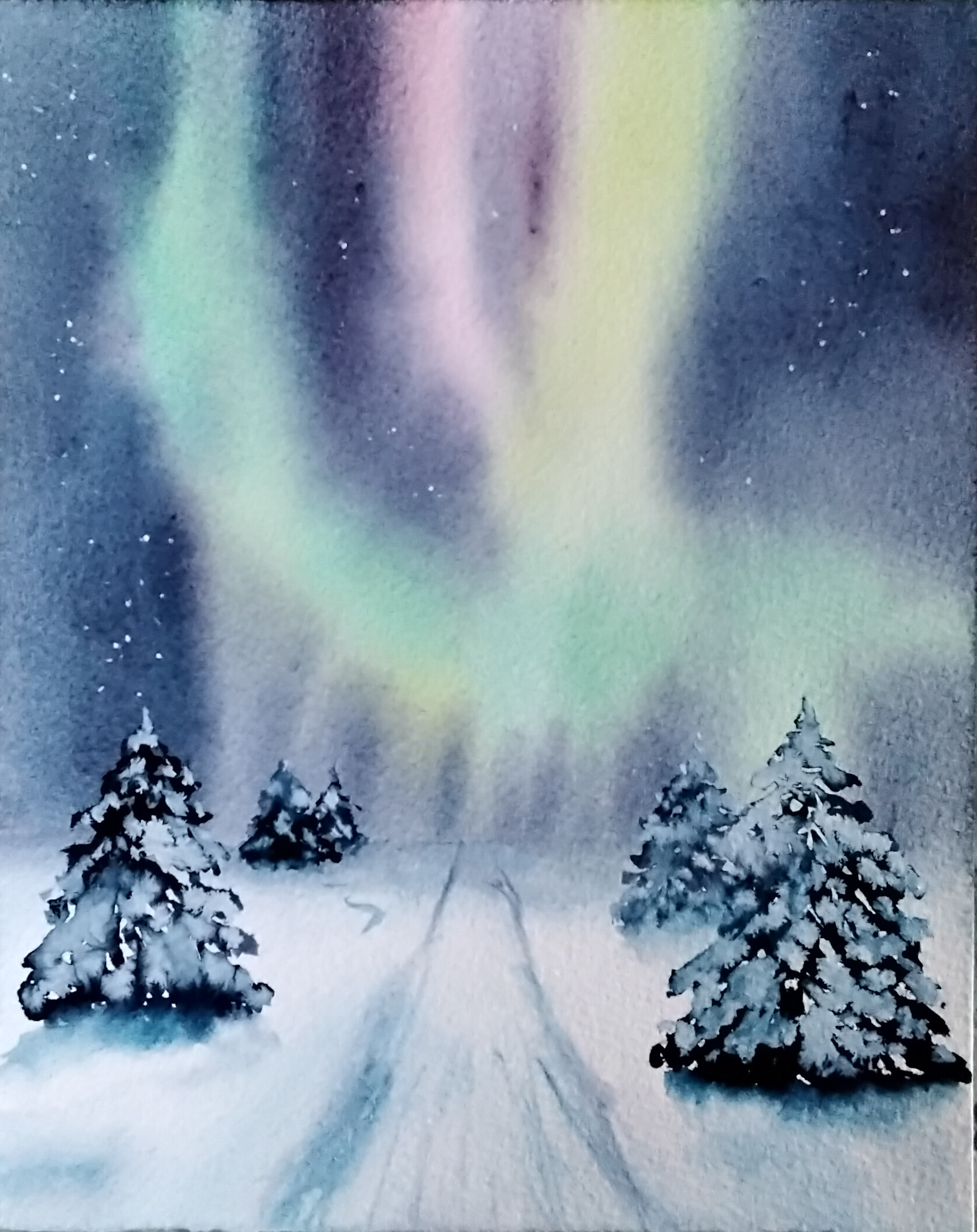 Mon commentaire ayant disparu, je t’en remet un. Ta peinture très graphique est vraiment belle, on sent le froid de la neige.