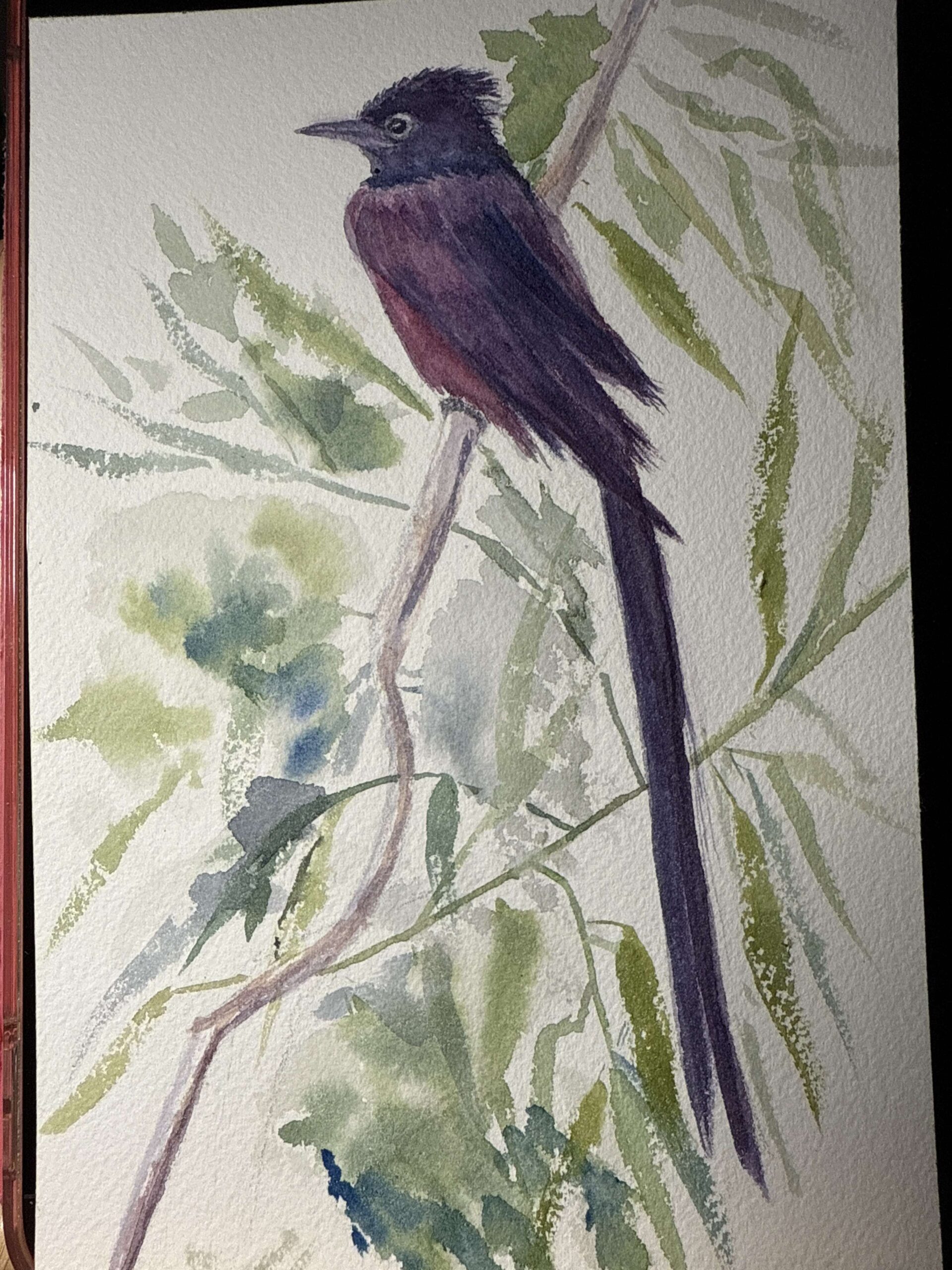 Bonjour, petite balade au Costa Rica. J’ai reproduit cette aquarelle qui était sur un paquet de chocolat. Pas facile le travail en négatif, il faut beaucoup anticiper.