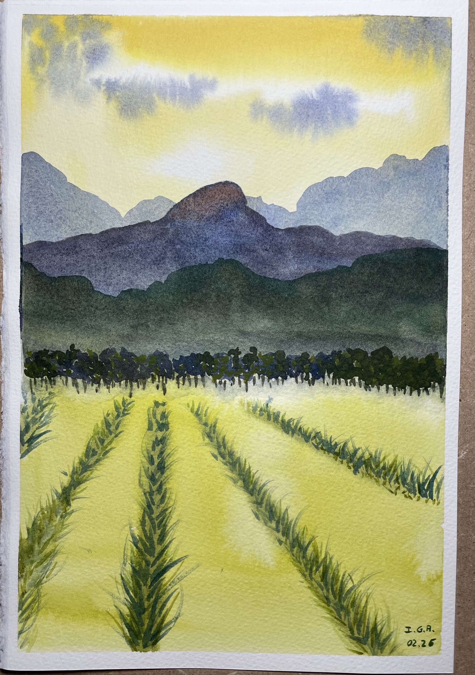 Bonsoir Isabelle, ça fait super plaisir de voir de nouvelles pratiquantes de l’aquarelle.tu commence bien à maîtriser ce chouette medium, je vois, ton tableau est très joli, tu as bien géré la végétation, la ligne d’arbres aussi. Je vois quelques petits éléments qui pourraient donner plus de vie à ta peinture. Il faudrait de l’ombre sous les arbres, et un peu aussi à la base des plantations. J’espère que ça ne te gêne pas que je m’autorise cela, c’est vraiment dans l’idée de partager de l’expérience, pas du tout dans un esprit critique.